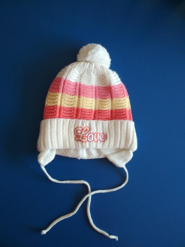 Красивая, теплая шапка для девочки, на флисовой подкладке, на завязках, размер 46/48.
