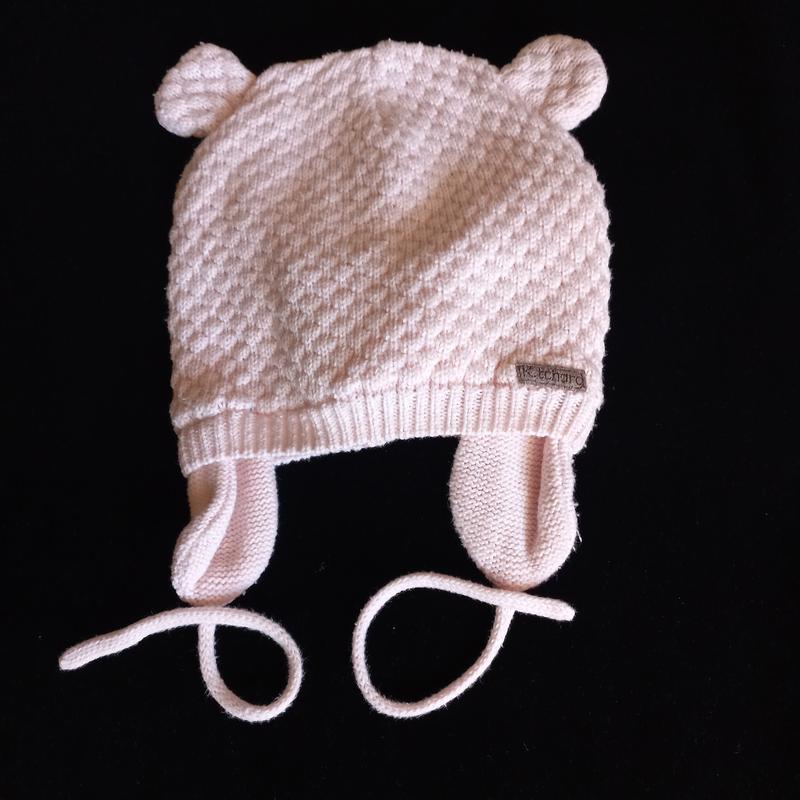 Нежно розовая шапочка. На завязках, ушки хорошо закрыты. На тонкой подкладке. Подойдёт от 1 до 3,5 лет.