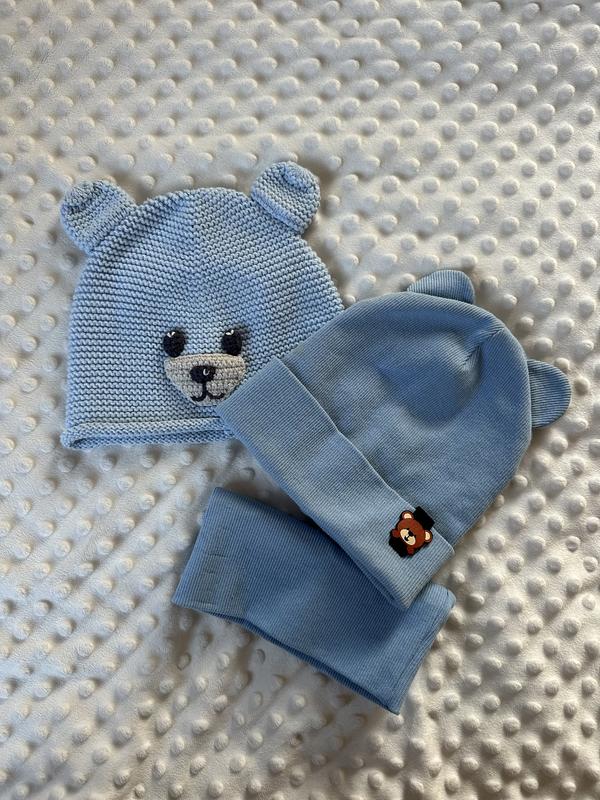 Продам две шапочки, в рубчик с хомутом. Размер 40-46. На 6-12м