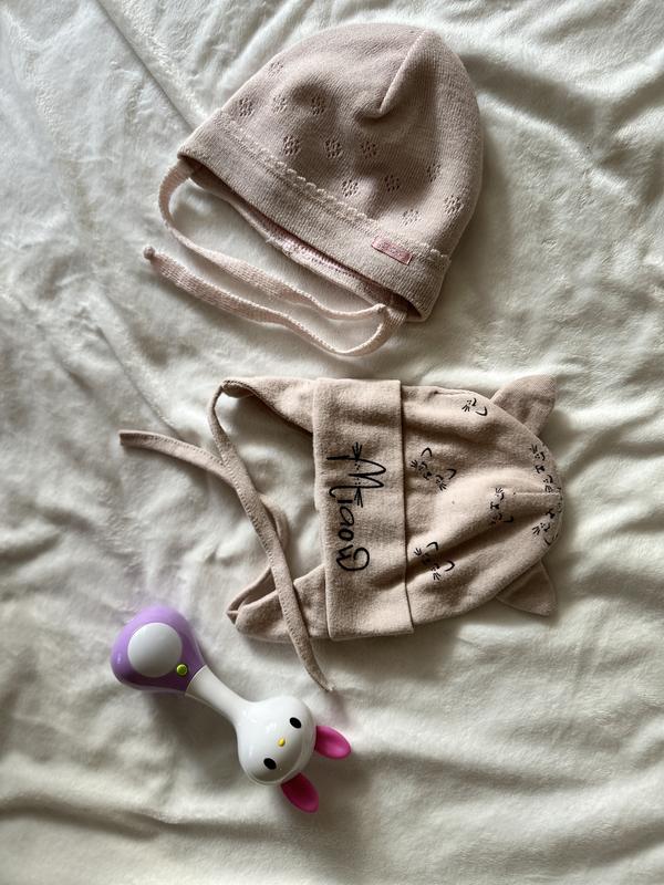 Новейшие шапочки 0-3 мес, да что с ушками одета раз 2 розовая новая