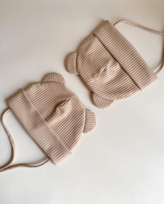 Демісезонна шапочка на зав’язках з вушками 🧸💛