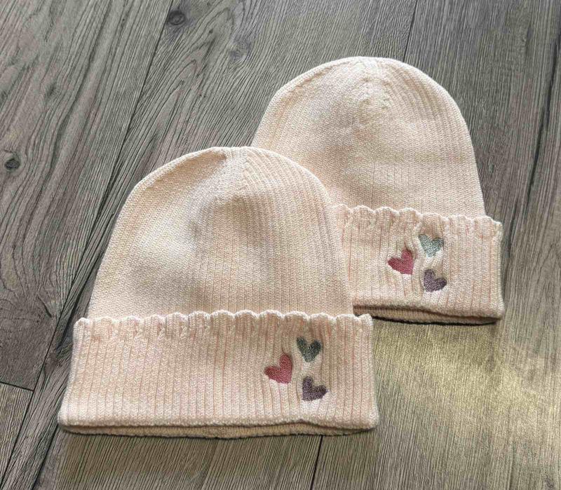 Шапка для девочки с сердечками. Состав: 50% вискоза 28% РВТ 22% нейлон. Размер: 48-50.