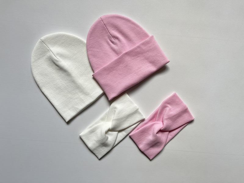 Шапка та повʼязка Матеріал рубчик -бавовна 95% Розміри від 40 до 56 см Кольори можно обрати інші