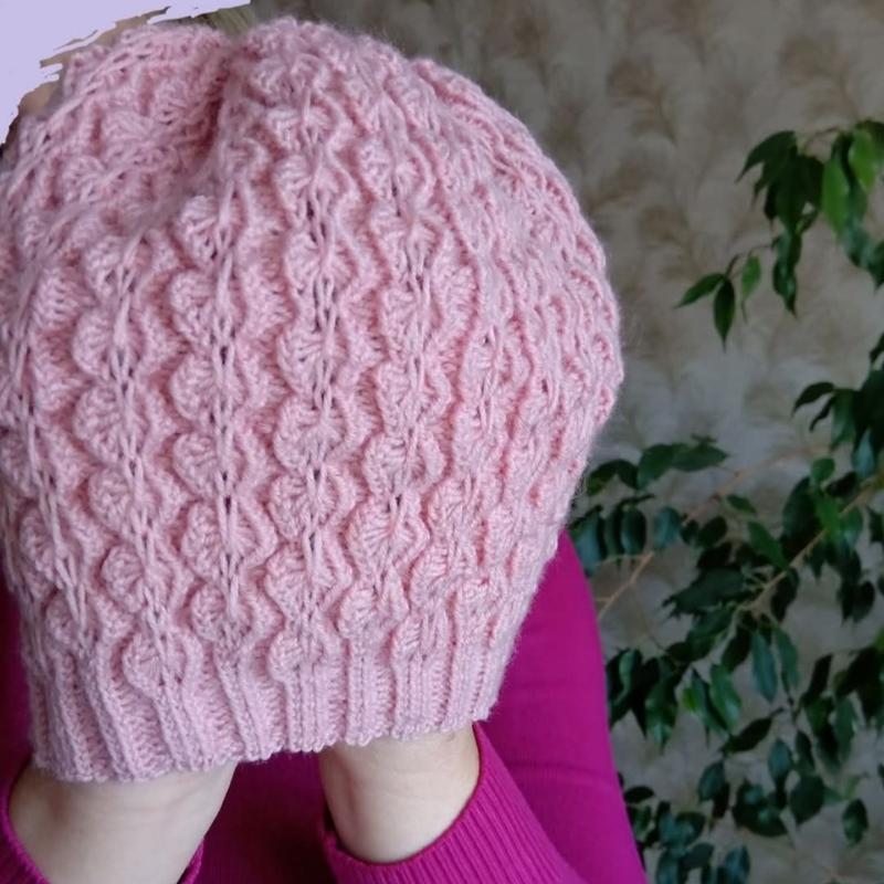 Шапочка ручной работы вязаная спицами. Новая.На девочку 1,5-4 года. 36-40см по резинке.В резинку вставлена эластичная резиночка, которые можно корегулировать под размер головы. Состав нити 50% шерсть,50% акрил