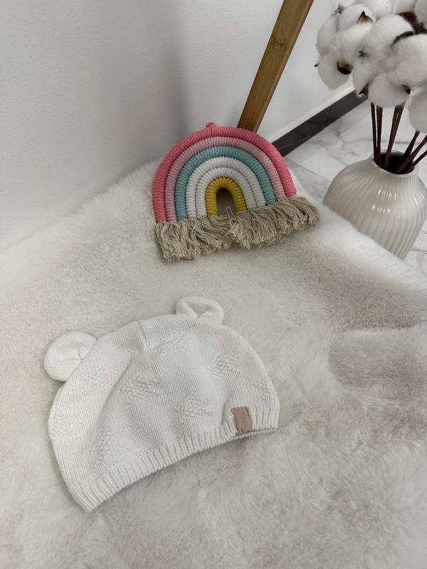 Классная белая шапочка с ушками мишка Lily&Dan, на 0-6 мес, состояние идеальное