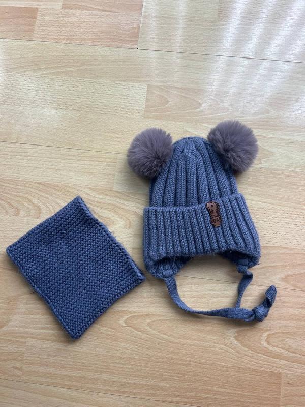 Зимняя шапка, двойная. Размер 47/48. Брали на возраст 9-12 мес.