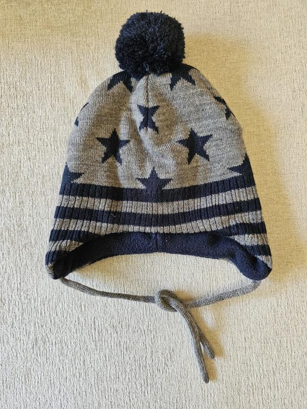 Шапка зимняя для мальчика, утепленная флисом. Новая, без бумажной бирки. Болеемерит, ориентивно идет на 6-12мес, запрашивайте замеры.
