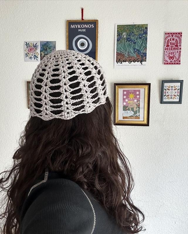 Вязаная летняя шапочка кроше шапка сетка y2k чепчик