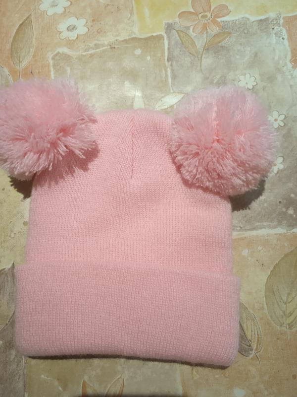 Шапочка для девочки 2 -3 года розовая с двумя помпанами. Два больших пушистых понпона, придающих шапке игривый вид, классический фасон бини с отворотом что обеспечивает дополнительное тепло длина 17 см, красивая
