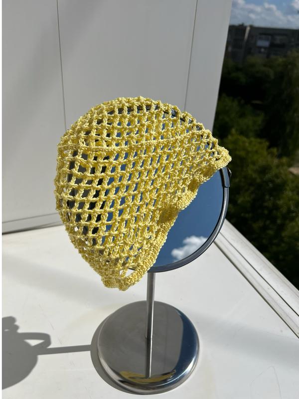 Бавовняна літня шапка ручної роботи/ вʼязана шапка/ шапка в сітку/ шапка сіткою/ ажурна ша...