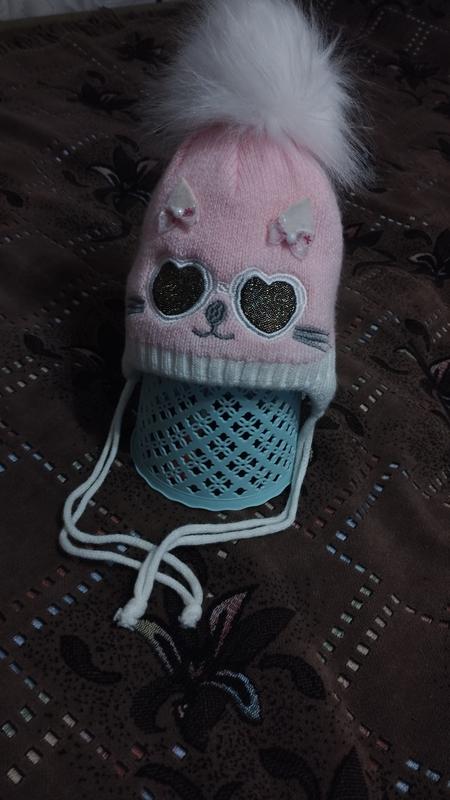 Шапка детская, кольр розовая белая 💖🤍. Тепла 🔥на сезон, Зима на шнурках Возраст - на 4 месяца.