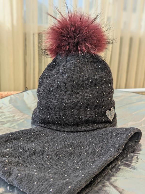 3210066 Шапочка это один из важнейших элементов зимнего образа! Мы уверены, что шапочка Джей не оставит равнодушной ни одну девочку. Милый детский комплект на девочку черного цвета в серебристую точку, декорирован бордовым помпоном из натурального меха. Размер 50 52.