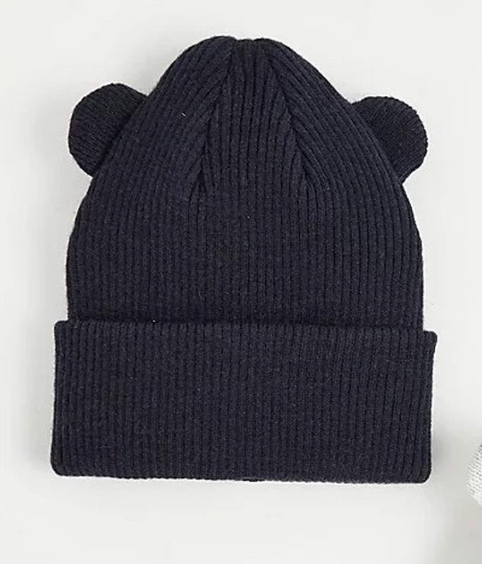 Милая шапка для ребенка текстурной вязки. С отворотом и украшена ушками. Ткань - 52% акрил, 48% полиэстер. 6-12М 44-46 см 12-18М 46-48 см