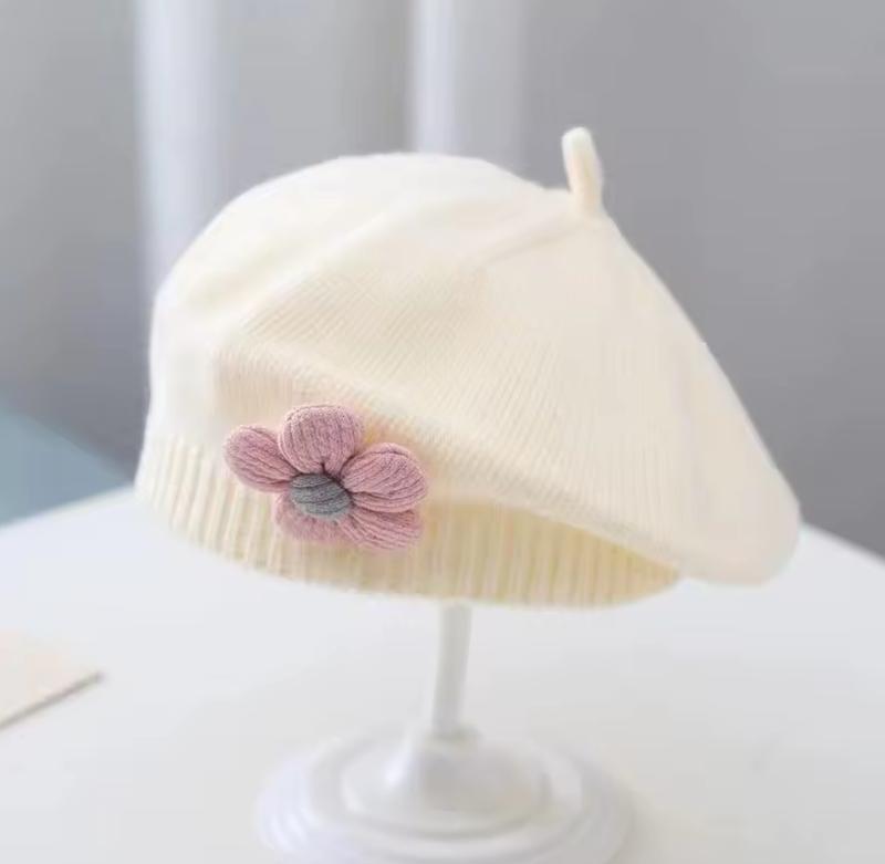Модная детская вязаная шапочка-берет с цветком, 0-3 года (46-52 см), молочный