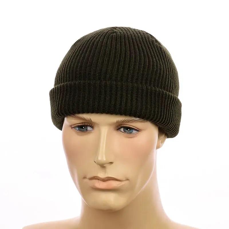 Шапка мини-бини унисекс с отворотом двойная вязка one size темная хаки
