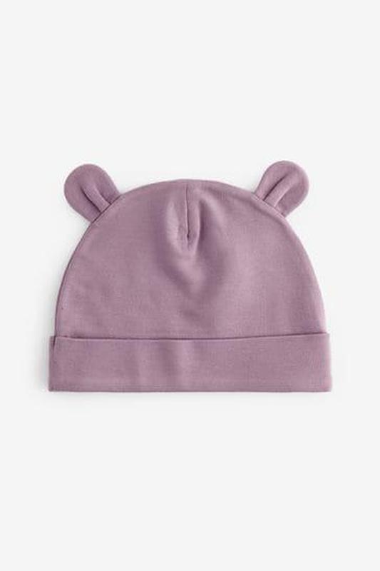 Трикотажная шапка бини для девочки. Имеет небольшой отворот и симпатичные ушки. Мягкие внутренние швы и натуральный приятный на ощупь материал. Состав: 100% хлопок. 3М - 42 см 6М - 44 см 12М - 46 см