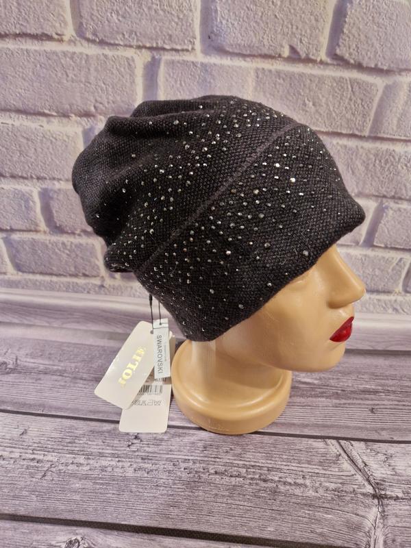 Вязаная шапка с стразами / шапка кашемировая / шапка стразы swarovski