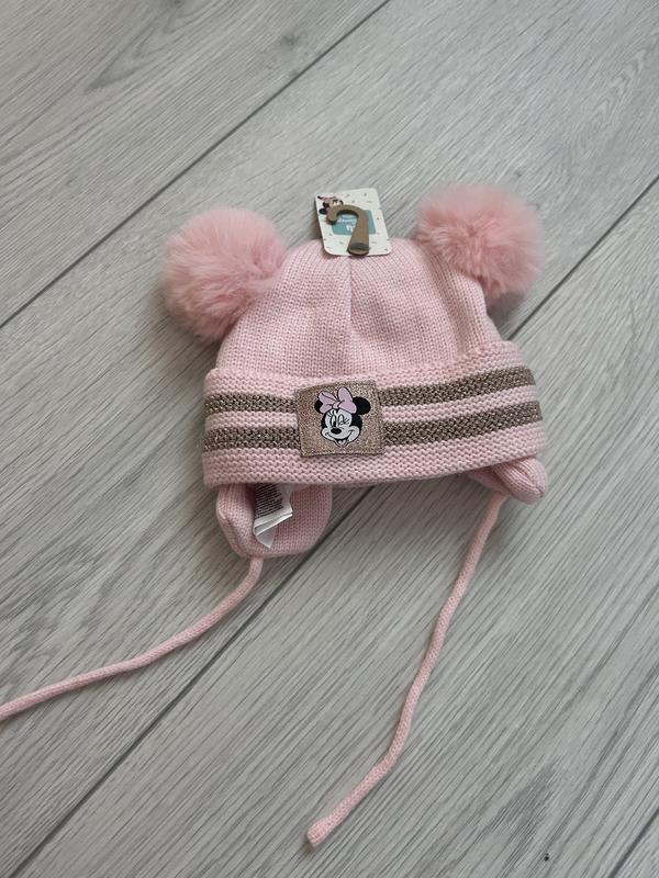 Нова шапка для дівчинки тепла 0-6 місяців рожева з міккі