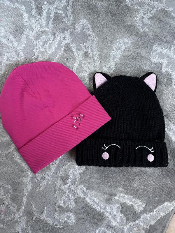 Шапочки на дівчинку 4-6 р Малинова нова Чорна вʼязана , в доброму стані Ціна за шт