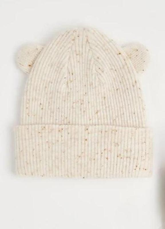 Милая шапка для ребенка текстурной вязки. С отворотом и украшена ушками. Состав: 86% полиэстер, 14% нейлон 3-6М 42-44 см 6-12М 44-46 см