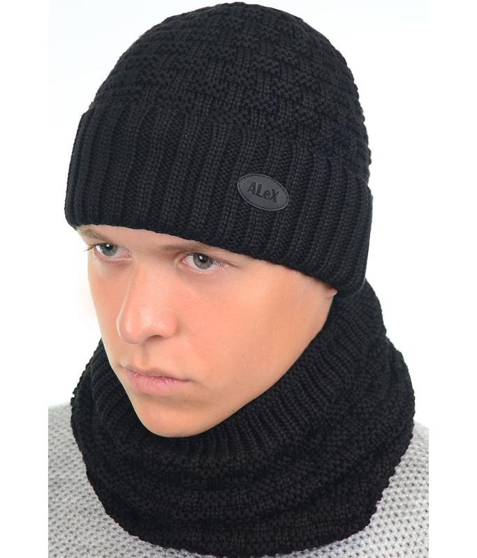 Теплый мужской комплект шапка и хомут (снуд) черный. Набор - состоит из хомута и шапки. Аксессуары выполнены из качественной пряжи с подкладкой из флиса. Классический крой и минимальное количество деталей. Такой теплый комплект идеально подойдет для повседневного образа. Размер хомута: ширина 25 см, высота 25 см. (утеплен флисом). Состав: wool 50% , acrylic 50% Размер: 56-58
