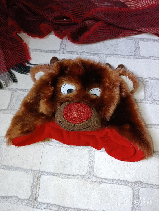 Шапка праздничная теплая новогодний олень рождественский принт мех