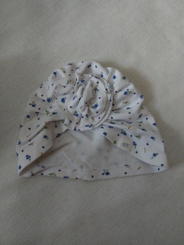 Брендовая тоненькая котоновая шапочка для девочки 4-6м По бирочке указан размер 6-12м, лучше подойдет на 4-6м