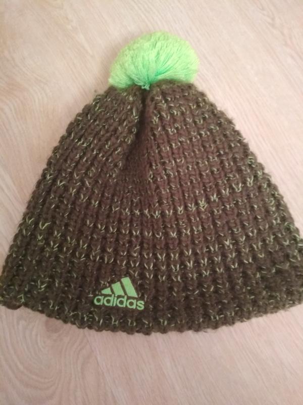 Крута глибока тепла на флісі шапка "Адідас", яскравий бомбон, шапка зеленого кольору з коричневим.