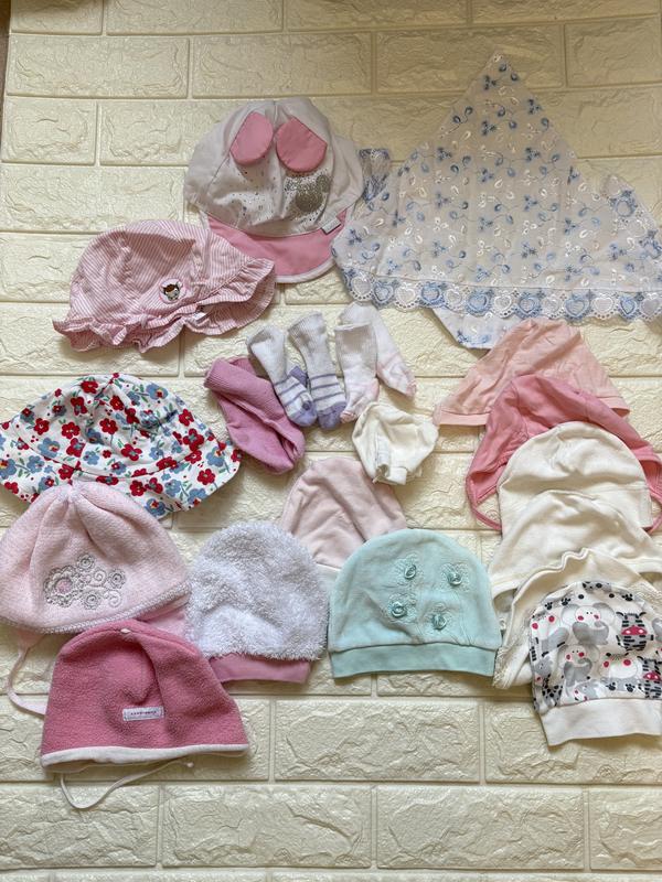 Набір лот пакет шапочки для новонародженої дівчинки 0-6 місяців панамки