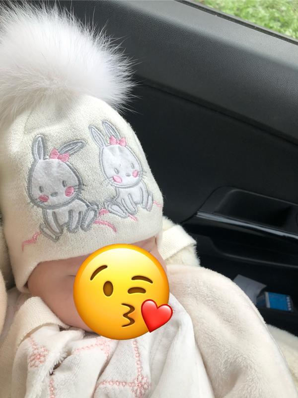 Шапочка дитяча з натуральным помпоном,розмір 38,бавовна,всередині фліс.