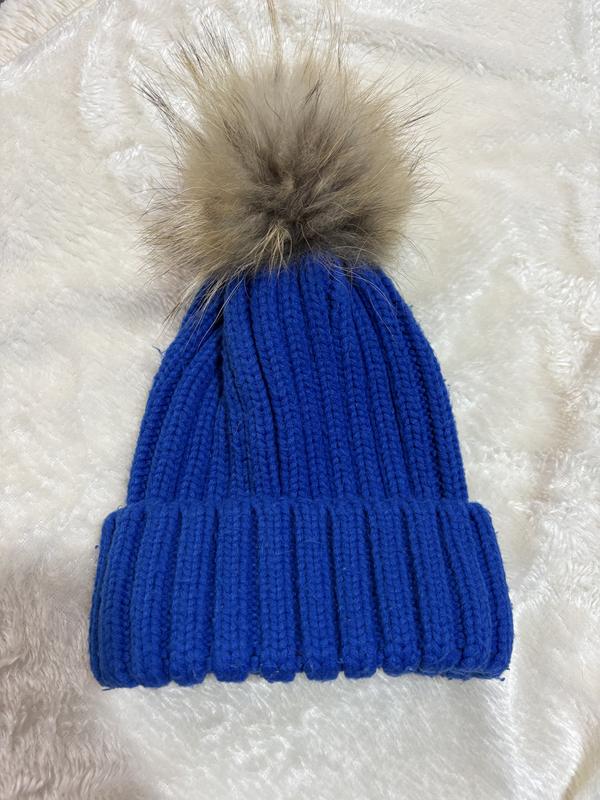 Вʼязана Шапка з пухнастим помпоном ,який відстібається .Зимова.