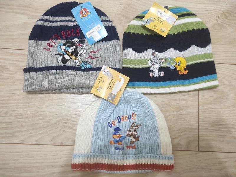 Оригинальные шапки с героями известных мультфильмов WB. Подойдут на мальчиков от 3 лет. На осень и теплую зиму