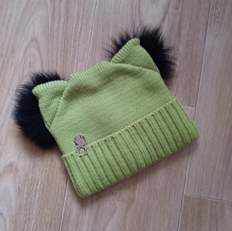 Детская вязаная шапка с двумя меховыми помпонами Redan на девочку. Шапка зимняя на флисовой подкладке. One size, 4-8 лет, ОГ 52-56: ширина 23 (тянется до 28), высота 20 Обмену и возврат на шапки нет