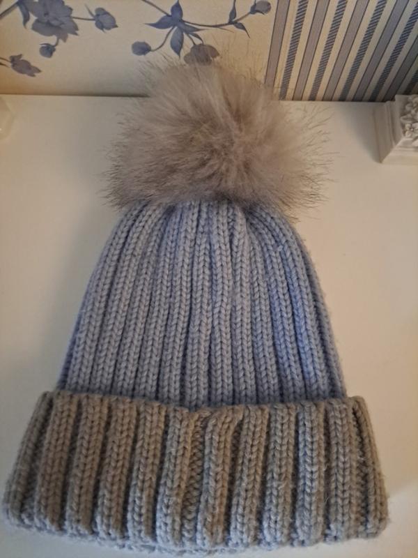 шапка вязаная серо голубая