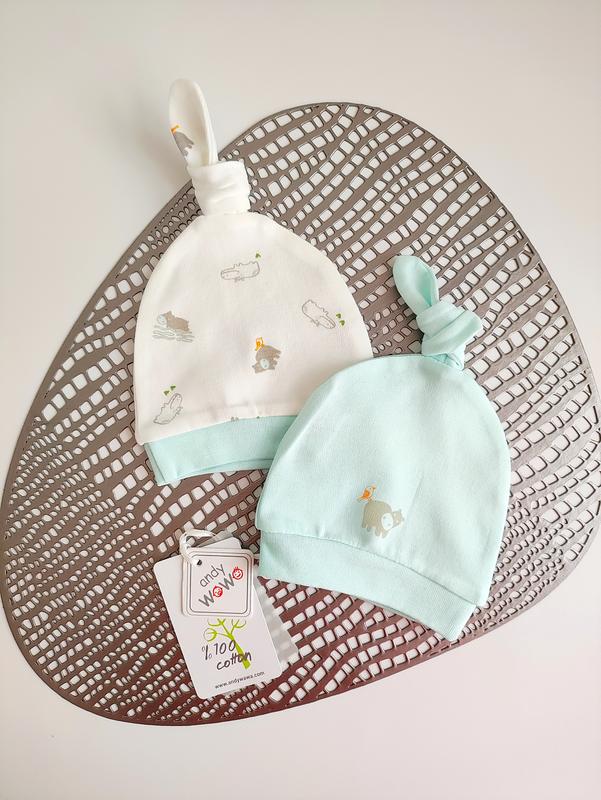 Красивые, очень качественные шапочки для ваших малышей💕💕 Ткань - трикотаж средней плотности (100% хлопок) Бренд Andy Wawa - фабдняя Турция премиум класса. Коллекция - Hippo Размеры: ❌0-3 луночка - проданы ✅3-6 месяцев Цена указана за комплект из 2 штук