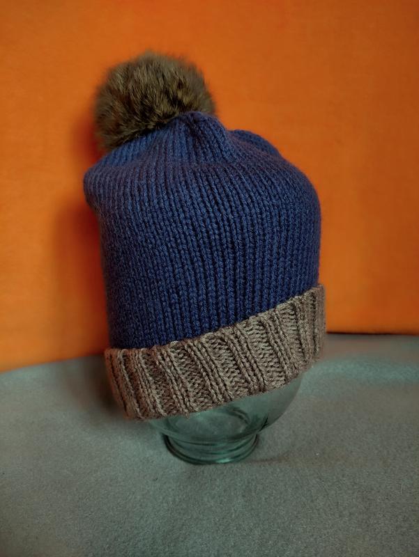 Шапка с натуральным помпоном на объем 54-58