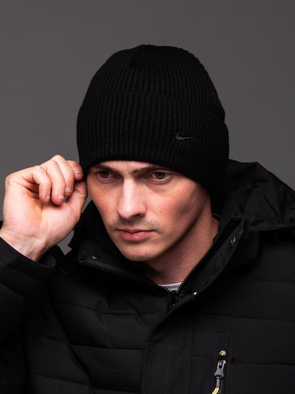 🔶 Артикул: 5037 чор1 👔 Шапка мужская Nike черный лого 📐Размеры: единственный размер ( 56-58 ) 👍Материал: хлопок + полиэстер + эластан. флис в средние. лого - вышивка.