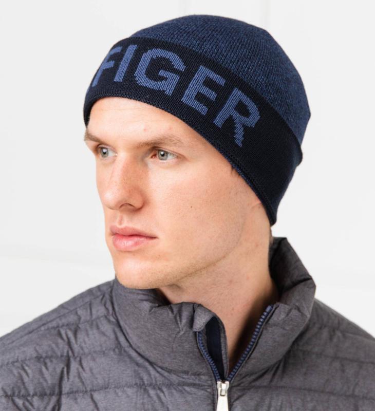 Зимова чоловіча шапка Tommy Hilfiger с логотипом у відмінному стані 49% вовна, тепла не колюча.