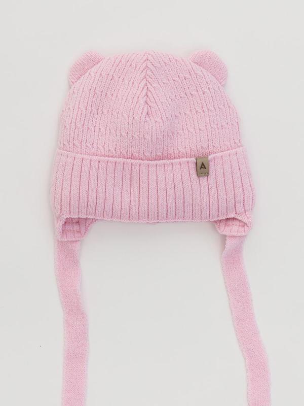 Зимняя шапка на завязках для девочки новорожденной 38 с ушками с утеплителем