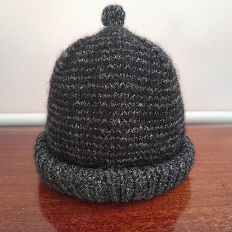 Шапка мужская серо-черная 56р. Вязаная в ручную шерсть, бесшовная.