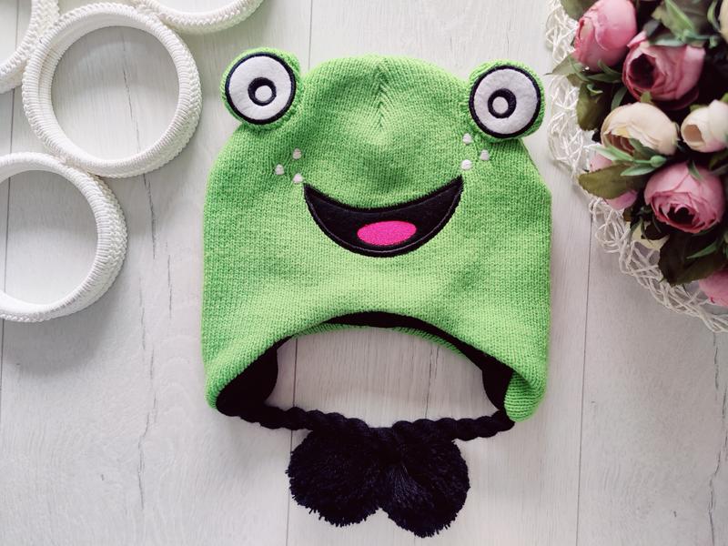 2-5 лет, теплая зимняя шапка гна флиси лягушка на завязках артикул: 25148
