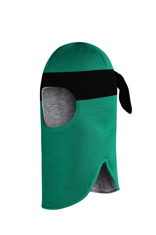 Шапка-шлем детская теплая зимняя "ниндзя" изумруд