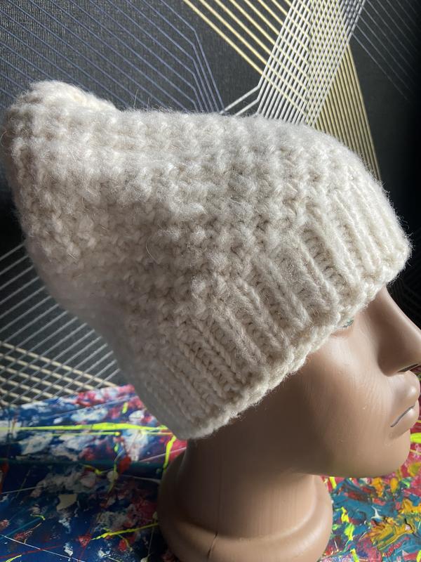 Пропоную шапочку біні з суміші Анголи та мериносу. Дуже мʼякенька і неймовірно тепла. Висота шапочки 25 см, напів обʼєм в не розтягнутому стані - 24см. Підійде на обʼєм голови 55-59. При потребі можу зробити додаткові фото, або відео.