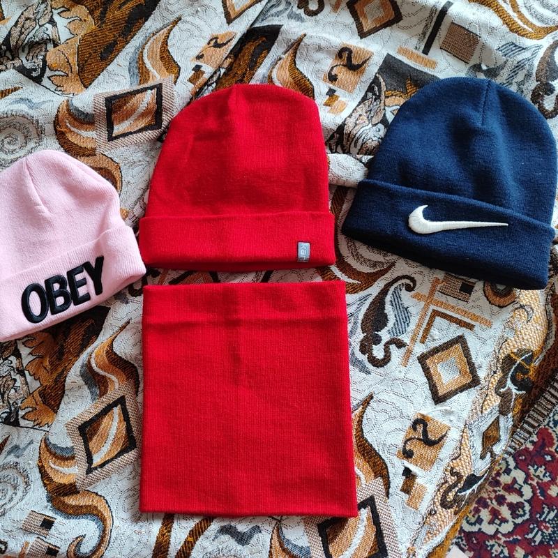 Шапка зимняя мужская ( черная Nike) и красная с хомутом женская Розовая подростковая на 10-15 лет+- Черная имеет сзади небольшой дефект, нужно чуточку подшить Другие в идеальном состоянии без пятен и дефектов Красная 200 Другие 120