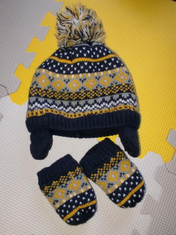 Зимняя шапка на мальчика 6-12 месяцев George закрывает ушки с перчатками