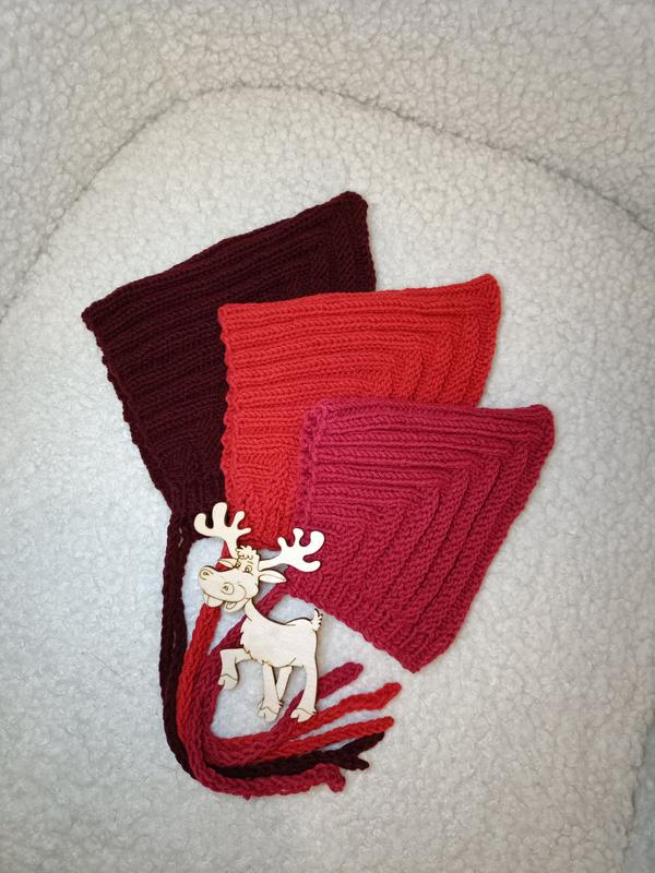 Чепчик гномик для малышей. Шапочка связана из хлопка. Размеры от 0 до 12 месяцев. Цвет красный и бордовый.