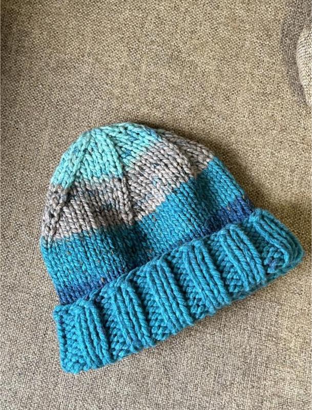 Тепла вʼязана синя шапочка біні Ручна робота Ідеальний стан