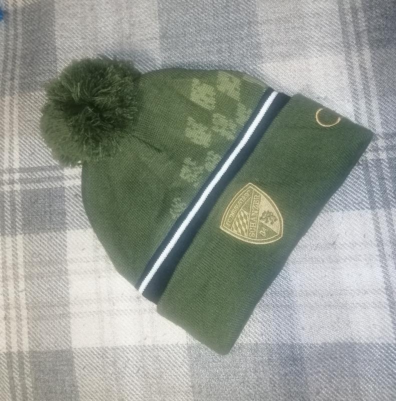 Двойная мужская шапка или ребенок. Ширина в спокойном состоянии 21 см, высота без помпона 21 см, общая высота 28 см. Новая без бирки.