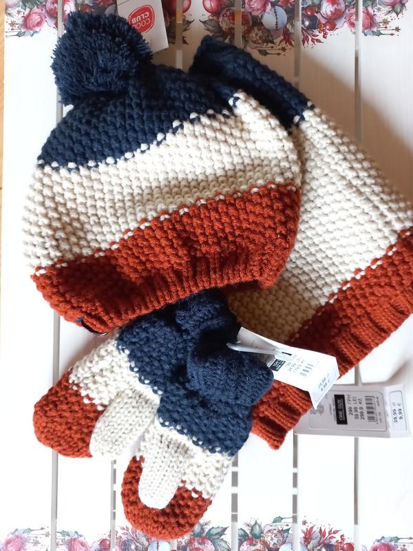 Шапка, хомут и перчатки без пальчиков. Шапка объемом 54 см, на размер 104-110, 4-5 рочков.