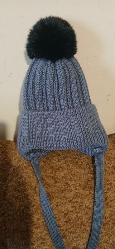 Шапочка детская зимняя вязаная на завязках, в середине флис